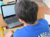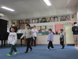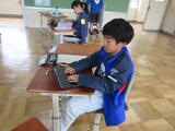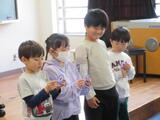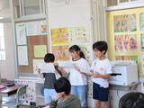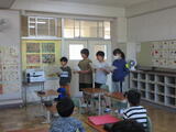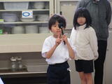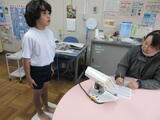 1年生4人が、生活科の学習で学校探検に出かけました。