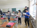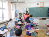 6年生、ALTと外国語の学習に取り組みます。