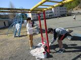 3月5日(木)6年生 遊具のペンキ塗り 投稿: ホームページ編集者 (17:11) 6年生が、卒業にあたり、遊具のペンキを塗り替えてくれました。さびと色落ちが激しい雲梯と平行棒です。ペンキの色を混ぜて、綺麗な色を相談しながら作ったり、丁寧にペンキを塗ったりしていました。難しいところは用務員さんにも手伝ってもらいます。6年生が塗り替えてくれた遊具を大切に使っていきます。 -