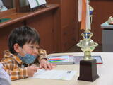 4月23日(木) 学校探検(1年生) 投稿: ホームページ編集者 (04/23) カテゴリー: 今日の出来事 1年生4人が、生活科の学習で学校探検に出かけました。 校長室では、ふだんはなかなか入ることのない部屋にドキドキしながら、珍しいものをたくさん発見しました。心に残った発見は、ていねいに絵に描いて教室へ。 学校の中には、まだまだ知らない世界が広がっています。 -