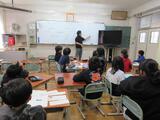 富士宮市議会総務文教委員会の学校訪問があったので、全校で取り組んできた「おまつり」の群読を聞いていただきました。こどもたちは、みんなで心を一つにして堂々と発表することができ、自信につながったと思います。また、継続しているあいさつ運動を広げるために、議員さんにあいさつをしながら来年度のあいさつカレンダーをお配りしました。
