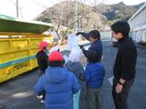 3年生が集めているアルミ缶がたまってきたので、業者に回収をお願いしました。回収作業に立ち会ったこどもたちは、安藤紙業の佐野さんに疑問に思っていることを質問しました。また、回収の際に気をつけたらよいことも教えたもらったので、他学年のこどもや地域の方に知らせていきたいという思いをもちました。