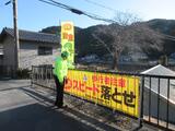 学校西側の県道清水富士宮線は、交通量が多く、さらに自動車がかなり速い速度で通ります。こどもたちの安全を守るために、交通安全協会内房分会が横断幕を新しくしてくださいました。遠くから見ても目立つ黄色い横断幕です。今日は、朝礼でこどもたちにも知らせると共に、交通安全指導をしました。